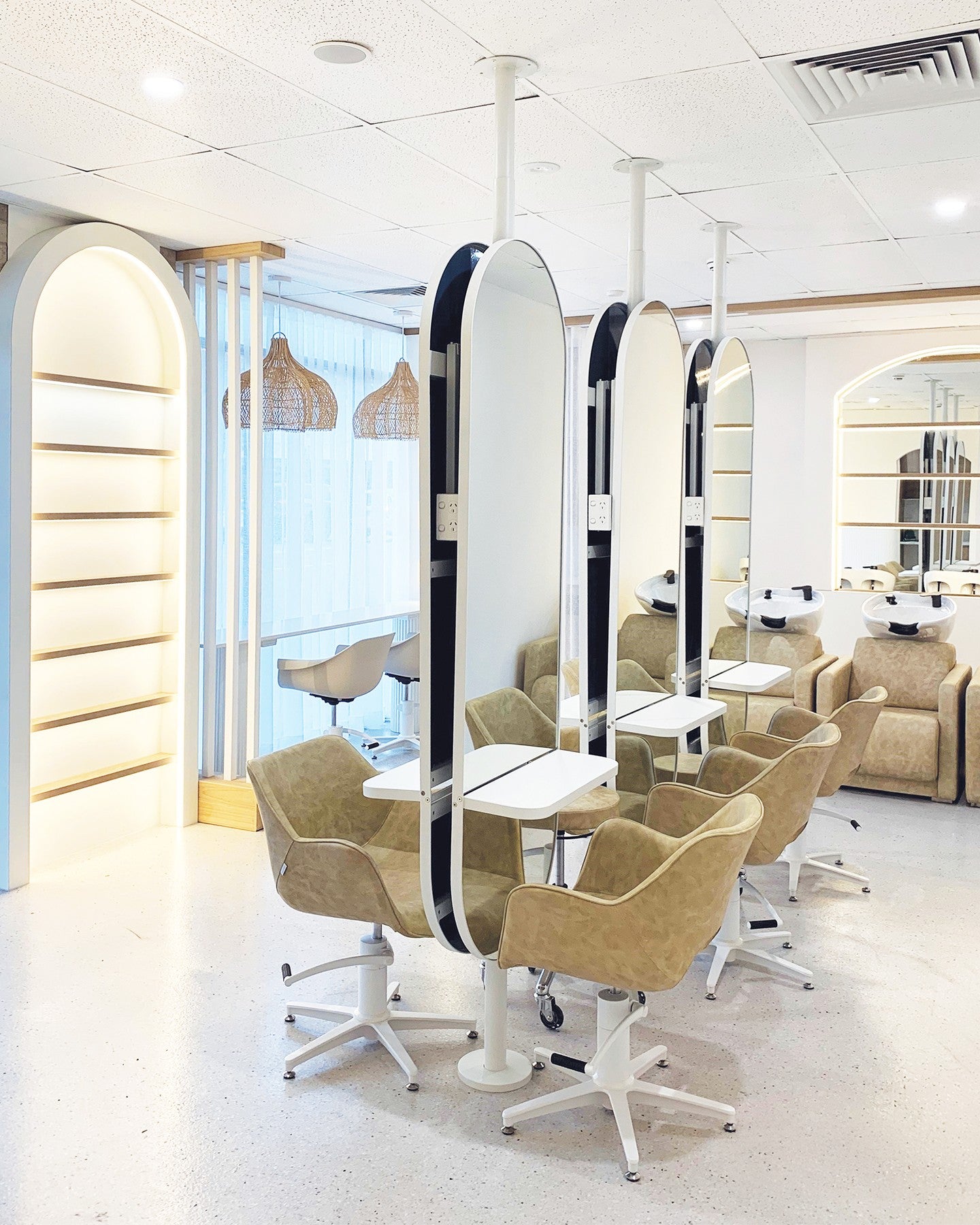 Pole joiner er en mat-hvid, fritstående betjening, der tillader dig at hænge comfortel spejle på begge sider og dermed udnytte pladsen i din salon bedst muligt. Denne model leveres uden plade, så den skal skrues fast i gulvet. Spejle medfølger ikke.